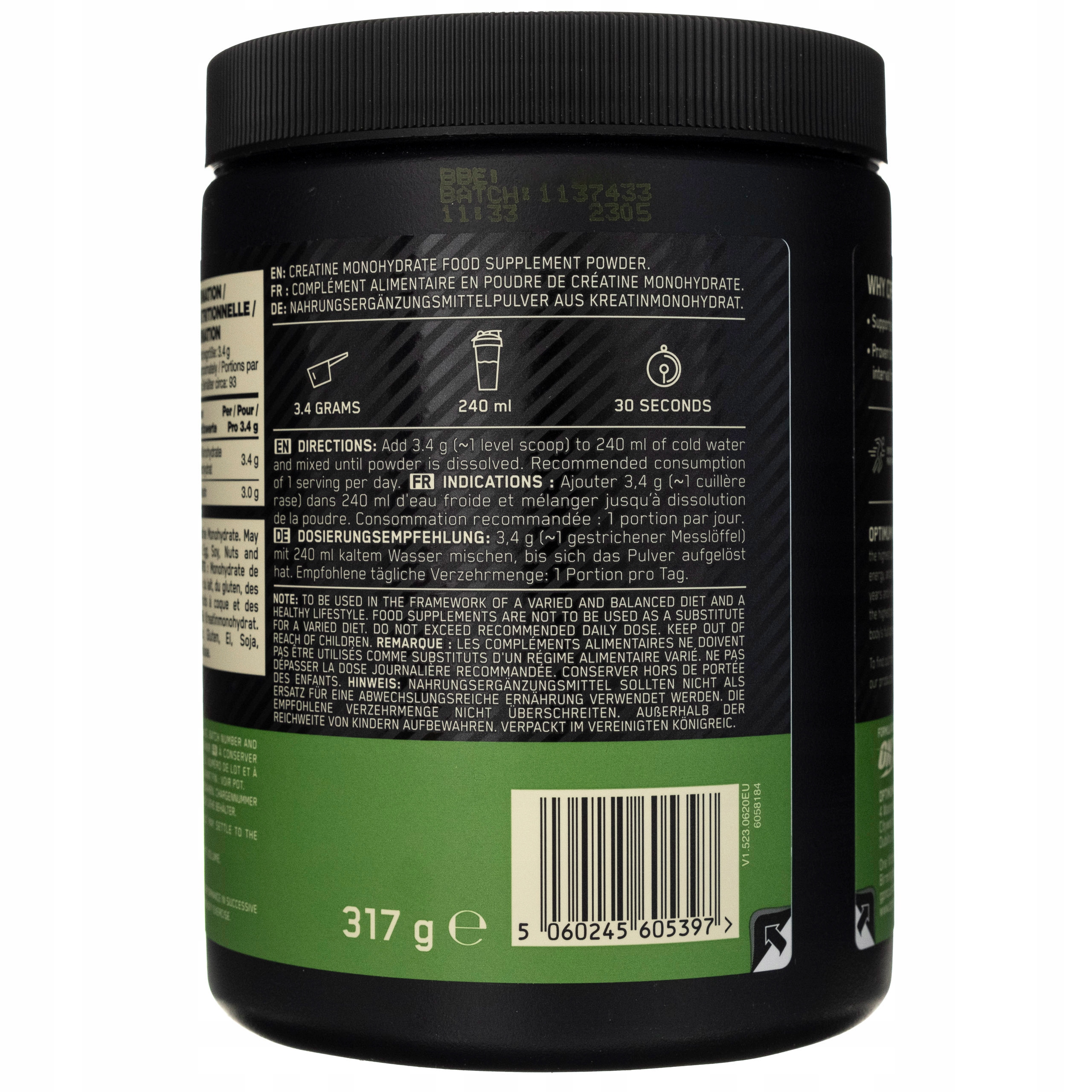- 100% monohydrate of creatine